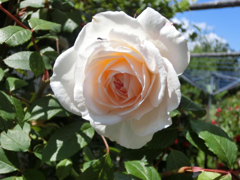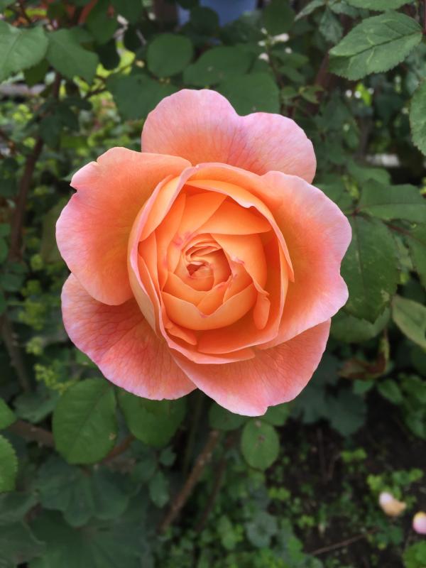 In meinem früheren Leben war ich Rosistin. Bei meinem heutigen Besuch bei meiner Tochter durfte ich in den nun etablierten alten Sträuchern schwelgen. Dies ist Leander.