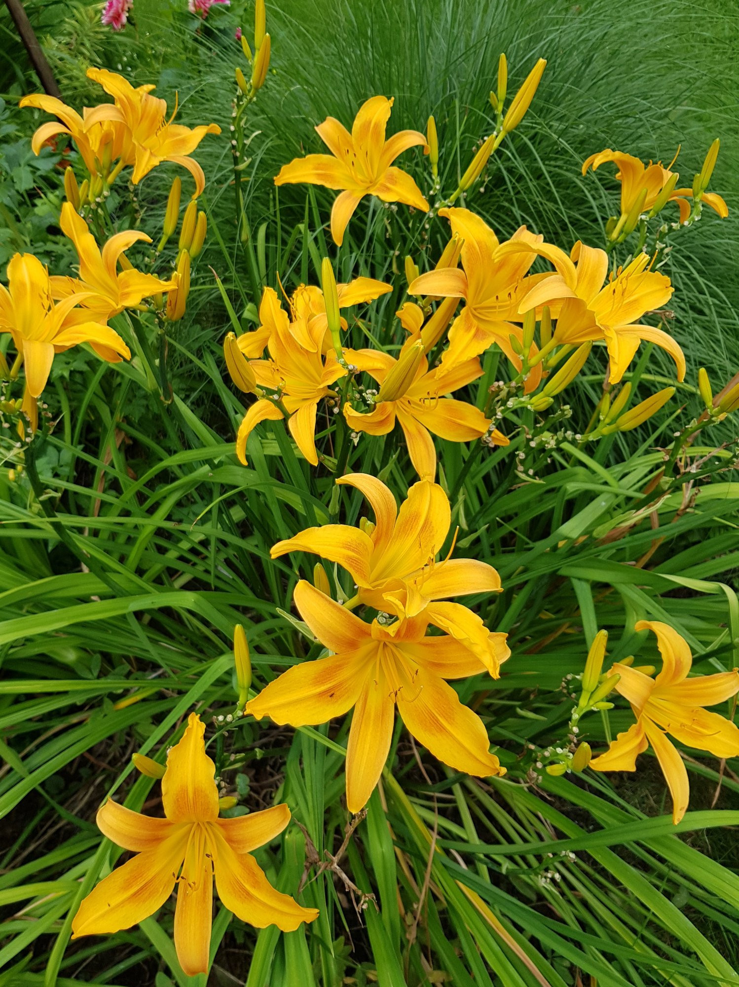 Heute 7 Blüten, gestern fünf - ein Sämling von den Tambergs und es sind noch ein paar Knospen dran. Hier ist es die am spätesten blühende Taglilie.