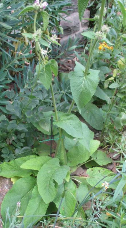 Und schon die nächste Knobelei: Von Marnijs habe ich vor Jahren (laut Etikett) eine "Phlomis armeniaca" gekauft. Jetzt blüht die Pflanze, aber nicht gelb wie sie sollte, sondern in rosa. Die Pflanze ist oben verzweigt und die Blätter sind rauh behaart. Ganzkörperfoto...