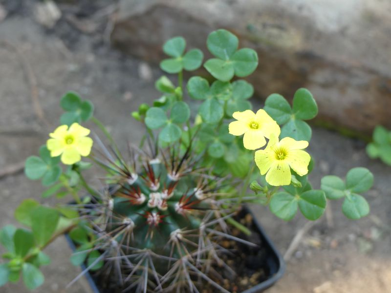 In einem Kakteentopf ist ein Klee aufgegangen. Er blüht vornehmlich am Morgen und hat dickfleischige Blätter. Liege ich mit Oxalis tuberosa richtig, oder gibt es da noch andere Kandidaten?