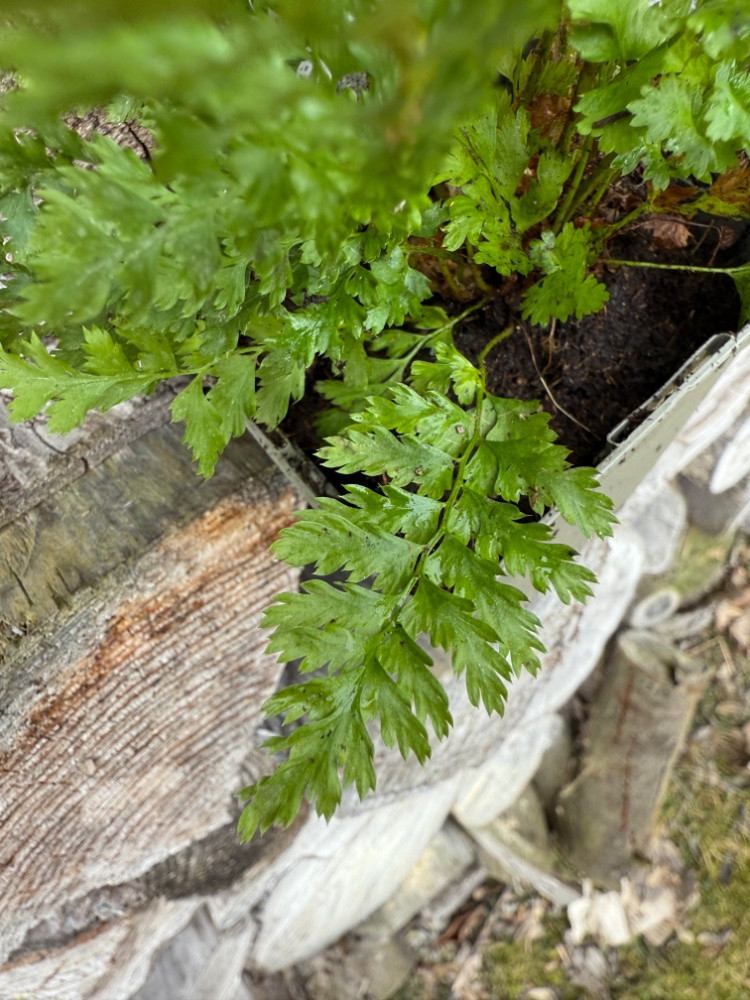 Ich hatte es jetzt auch satt - nach 4 Jahren mit immer jeweils genau ZWEI Wedeln hab ich Polystichum ‚Green Lace‘ jetzt erstmal wieder getopft, vielleicht kriege ich ihn ja mit mehr Päppeln in die Gänge?