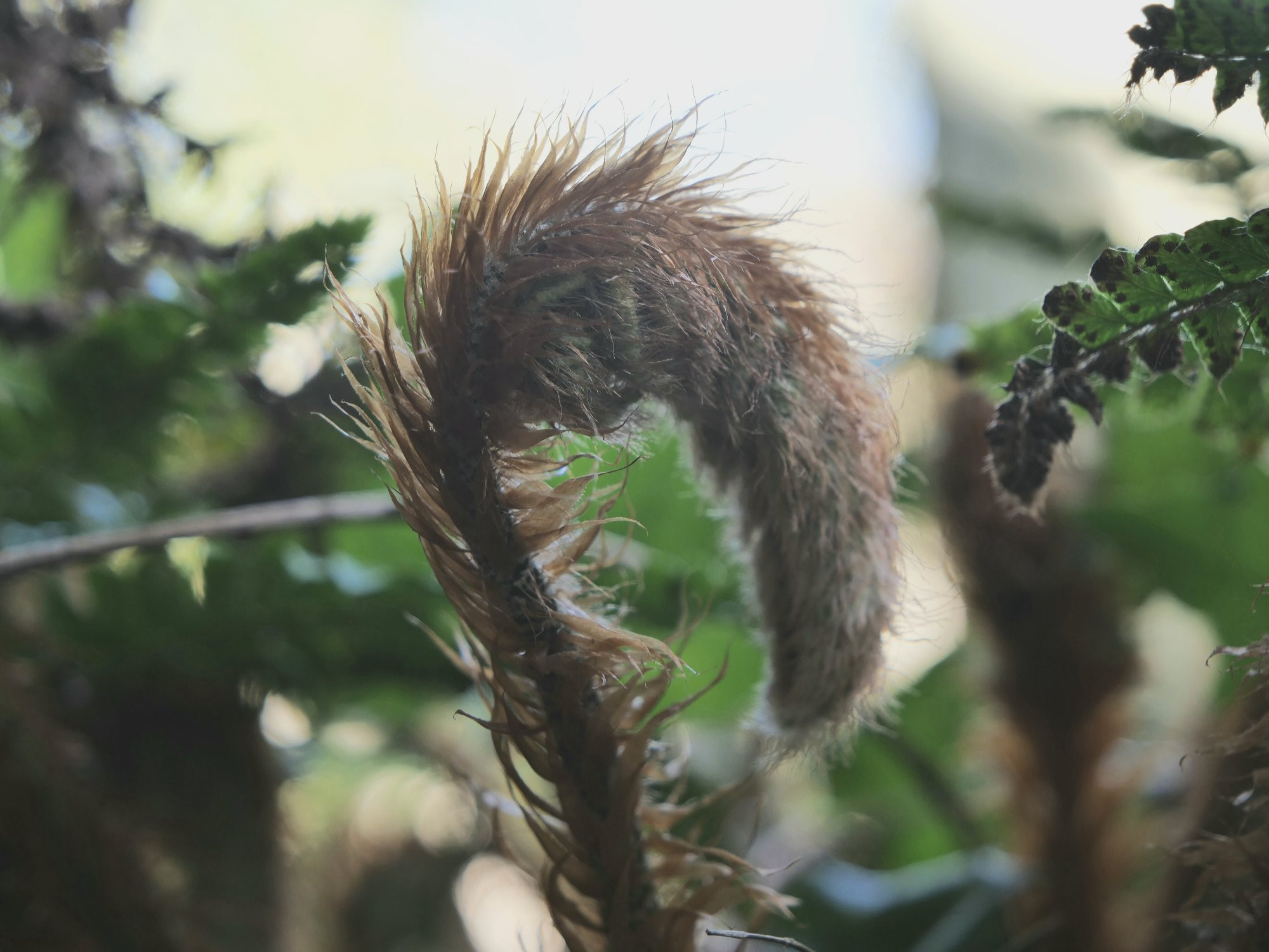 Bei der Entfernung der vorjährigen Wedel des P. polyblepharum hätte ich um ein Haar diese haarigen Gesellen übersehen.