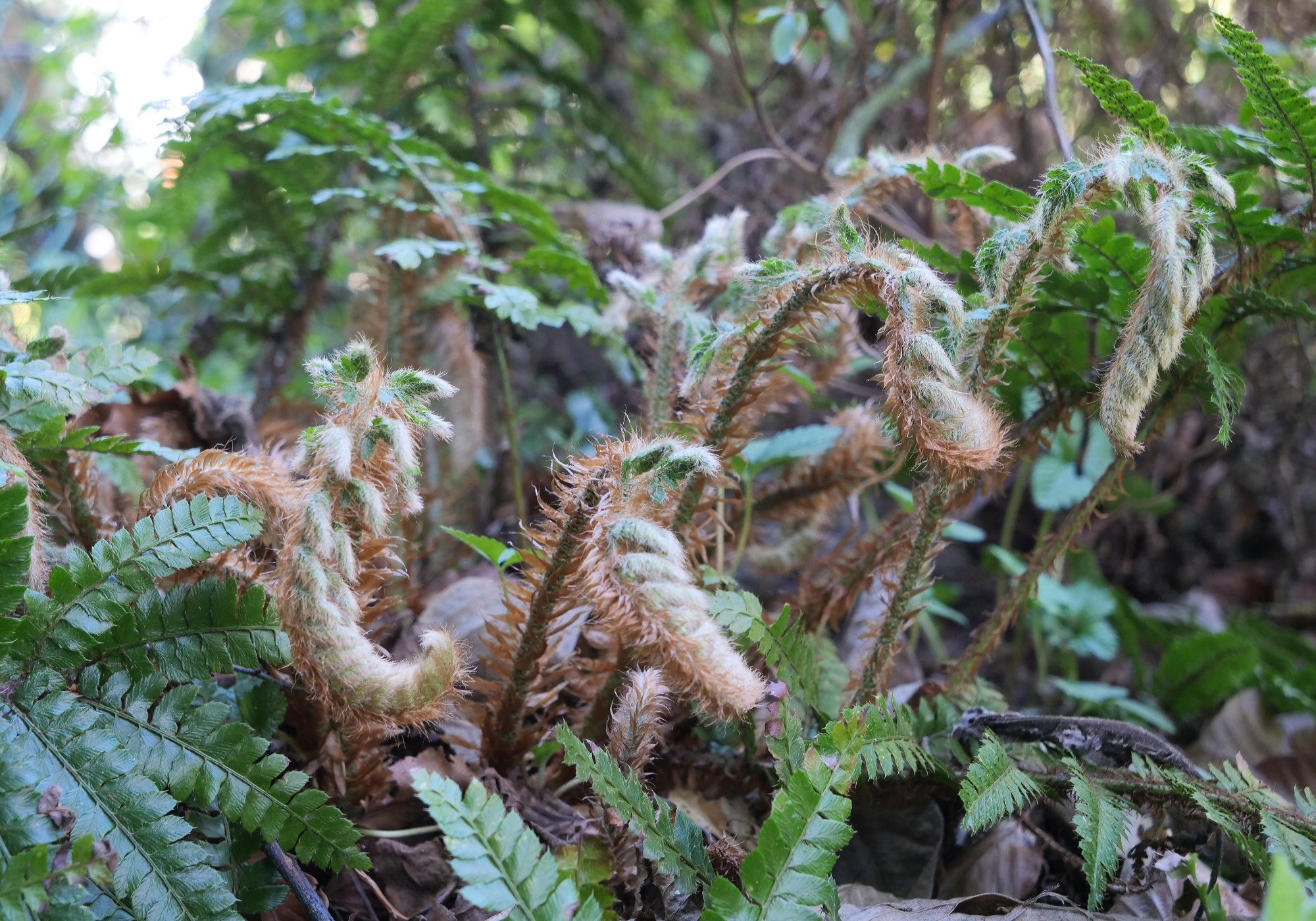 P. polyblepharum ist ein Traum, die sich langsam ausrollenden Wedel sind von umwerfender Schönheit. Leider wird dieser Farn bei uns regelmäßig trotz Laubschutz von einem Spätfrost gekillt. Daher habe ich mich für einen anderen, unempfindlicheren Farn entschieden, damit der so richtig üppig werden kann. Es ist frustrierend, wenn besonders schöne Farne kein langes Leben haben, weil das Wetter nun mal so ist wie es ist