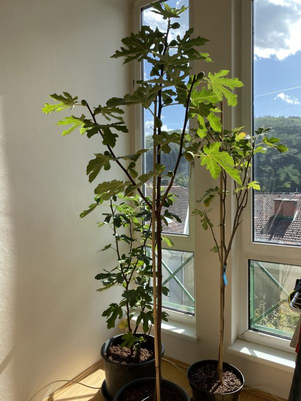 Meine 5 Negronne Feigen könnten vielleicht noch reifen bis November (dann im Wohnzimmer, bevor es wieder eingepackt ins Winterquartier auf den Balkon geht)