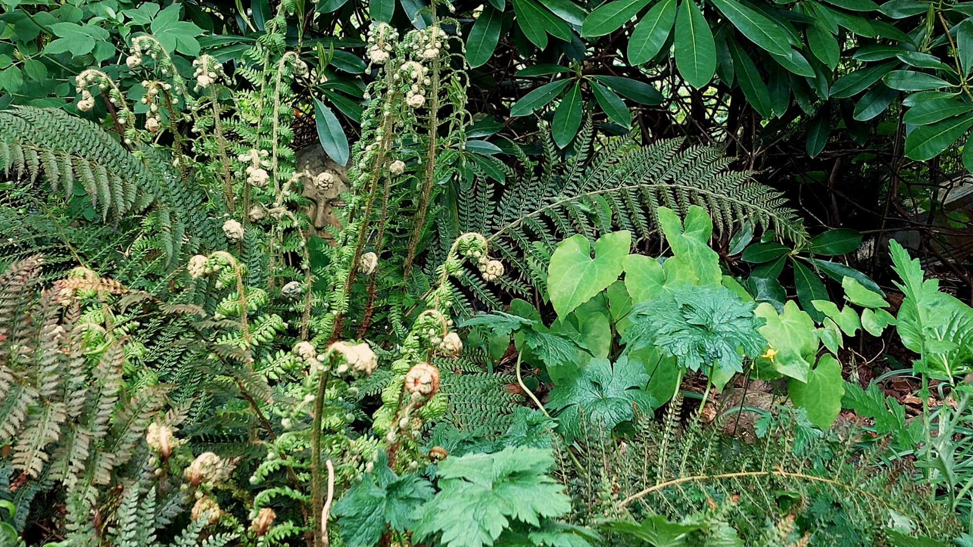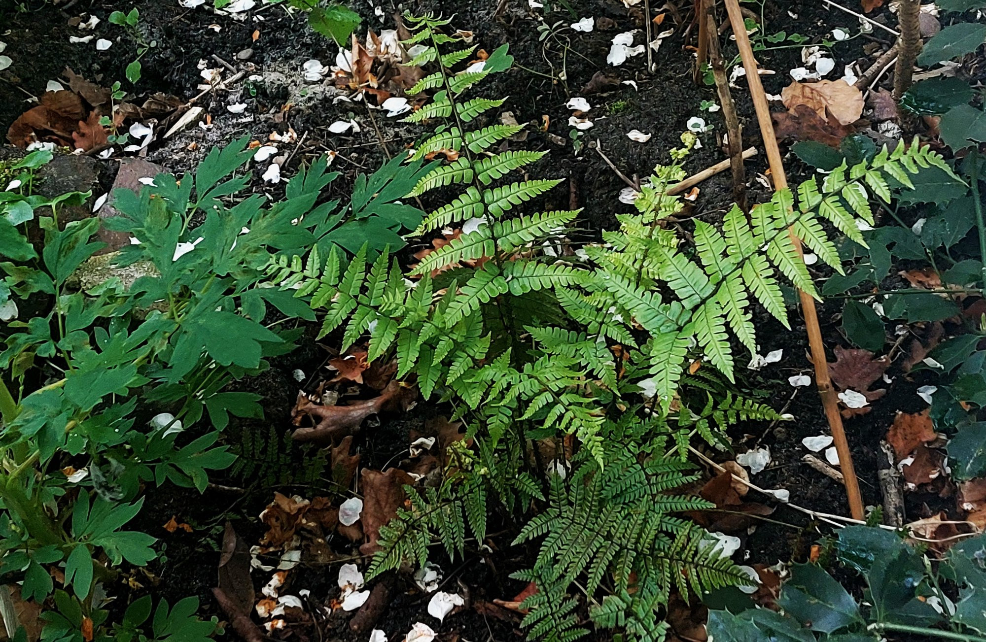 Im übrigen ist es eine Freude, den Farnen in den Schattenbeeten bei ihrem Entrollen / Wachstum zuzuschauen.
