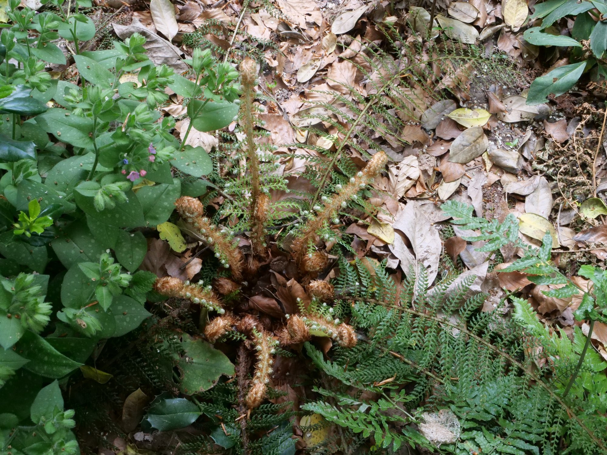 Der 'shiny (oder spiny) holly fern' Polystichum neolobatum Polystichum setiferum 'Nantes'