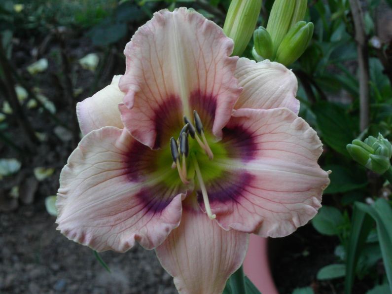 Schade, dass du nicht weißt, wie sie heißt. Ich persönlich kenne immer gern die Namen meiner Sorten, damit ich nachforschen kann, von welchen Eltern sie kommen. Leider geben das die Züchter ja nicht immer an, und dann hängt unter Umständen das Problem der zu starken Inzucht in der Luft.@ rhodocallisDie 'Huckleberry Candy' habe ich erst letztes Jahr angeschafft und noch nicht in Blüte gesehen. Der Grund, warum ich sie nesorgt habe ist, dass ich Samen mit ihr gekauft hatte, der erstaunlich spannende Augen bei den Sämlingen produzierte.