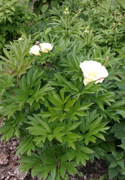 hier die itoh im habitus. das laub ist schön + kräftig, stängel staudig, sehr standfest. leider ist die blüte überbelichtet.