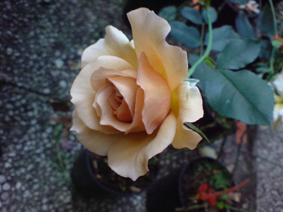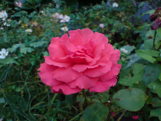 ...eine rose, die bei mir nur mehltau hat und daher von einer clematis president überwachasen wurde...sie schiebt immer wieder aus mehltaulaub solche blüten...ich kann sie jedesmal dann wieder ein jahr mehr nicht herauusreißen