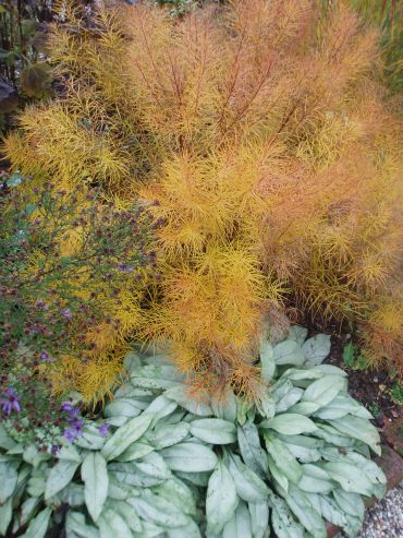Hat zwar nichts mit Stauden zu tun, aber einer der schönsten Herbstfarben bietet Vitis coignetiae, wenngleich nur für kurze Zeit!