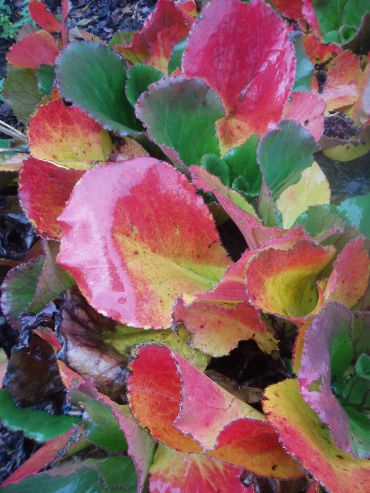 Diese Bergenie bekam ich einst von Beth Chatto unter dem Namen 'Mrs Crawford'. Sie ist ein Naturfund aus Nepal, wahrscheinlich Bergenia purpurascens.