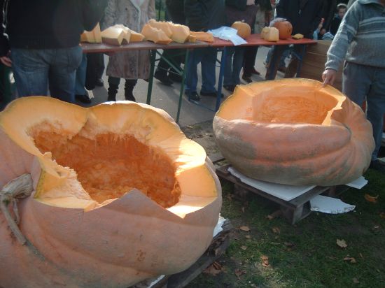 Wer wollte, bekam kostenlos ein Stück Kürbis und Samen. Das waren unsere: