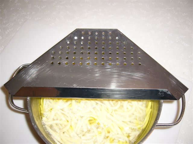 ... ich weiss nicht wie es richtig heisst, aber klein und handlich ist diese "Abguss-Sieb"