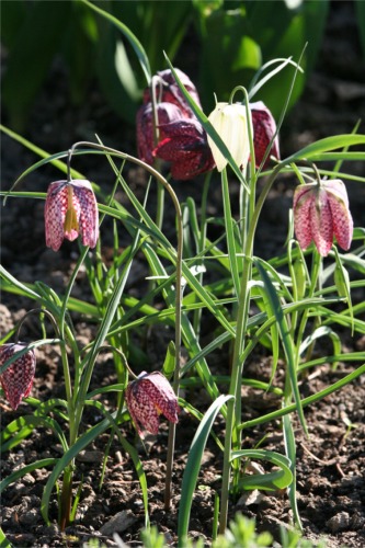 In der freien Natur blühen die Schachbrettblumen noch nicht, doch in unserem Garten erfreuen sie uns schon.