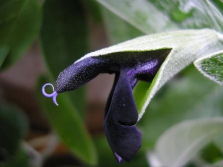 ach ja....ja:genau so sieht er aus ::) so samtig schwarz mit bläulichem schimmer sitzen gleich litzen die dunklen blüten aus silbrig bereiften "schoten" quasi...die stengel sind extrem klebrig und duften sehr starknach salbei