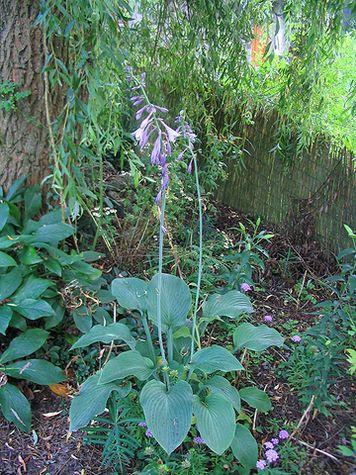 Hosta (zumindest einige) kommen nicht nur gut mit dem Schatten zurecht, sondern vertragen auch viel Trockenheit.Diese hier steht unter einer Trauerweide.