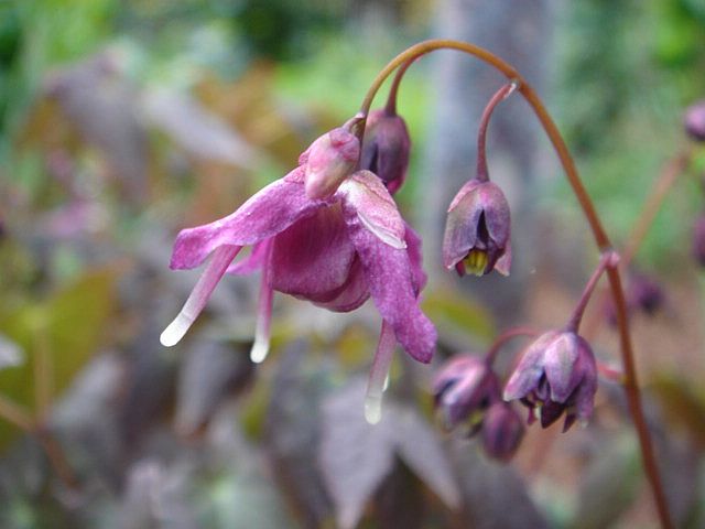 Von der guten Fee kann man sich violette Blüten wünschen ,klappt meistens wie hier bei Epimedium grandiflorum 'Lila Fee' zu sehen ist.