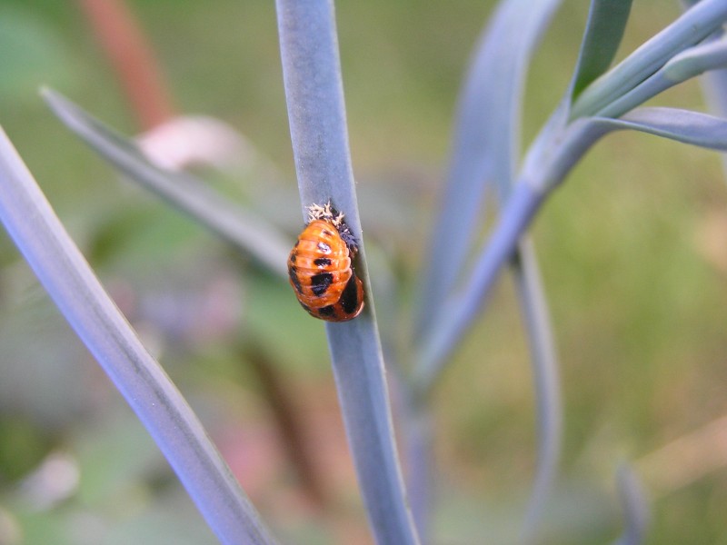 hier eine marienkäferpuppe! bei der häutung?! oder sehen die immer so aus?!