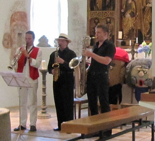 "Sax Puppets" musizierten zunächst im Garten.