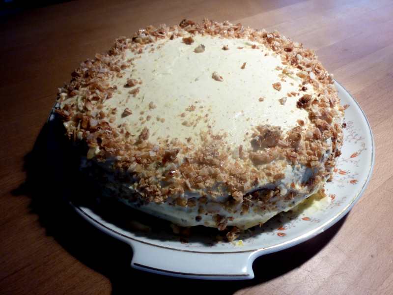 Die Torte sieht gut aus, Schokobisquit ist sicher lecker zu der Creme. Diese Torte ist immer der Hit, ich gebe auch manchmal geriebene O-schale an die Creme. Gestern ist auch kaum etwas übrig geblieben und zu Weihnachten muss ich sie noch einmal backen, sonst Familie beleidigt