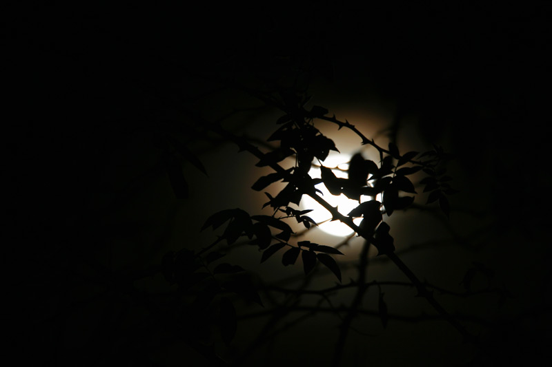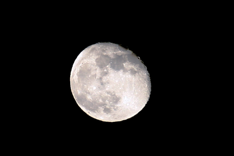 Die Überstrahlung hatte ich auch gerade vorhin. Ich habe mir wieder einmal die Zähne an dem Mond ausgebissen. Ich schaffe es nicht, den Mond hinter einer Nebelwand richtig belichtet hinzukriegen. Er ist immer dermaßen ausgefressen, so dass einem beim Betrachten auf dem Bildschirm die Augen schmerzen. Nur diese beiden Aufnahmen kann man gerade noch durchgehen lassen. Das erste ist eine Vergrößerung aus einem Foto.