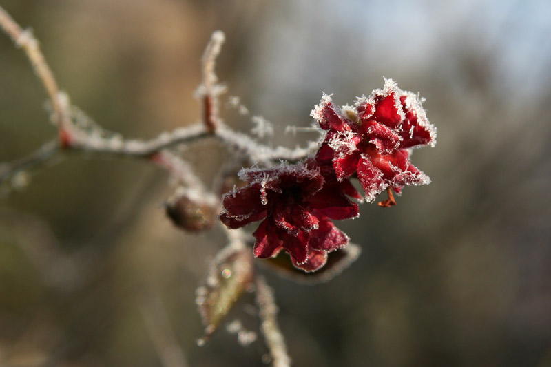 Nach Birgits zauberhaft weihnachtlichen Arrangements wieder etwas natürlicher Raureifschmuck. Der Hintergrund könnte etwas ruhiger sein. Ist aber leider ned.