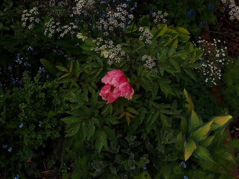 mein star heute war die 2008 geschenkte (ehemalige balkon-)strauchpfingstrose mit ihrer ersten blüte. erfreulich dezent.