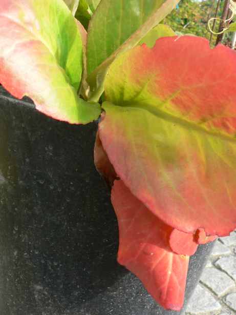 Leider kann ich nicht wirklich Neues hinzufügen.Diese Bergenie im Topf hat mich begeistert. Die gleiche Sorte in meinem lehmig-tonigen Boden ausgepflanzt, zeigt an manchen Stellen weinrote Färbung und an anderen gar keine...