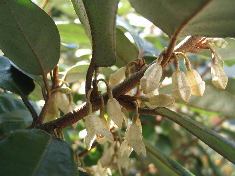 Ich kenne nur den E. ebbingei. Man kann sie erst im Frühjahr schneiden, dann hat man den Duft im Herbst und die Früchte hängen an der Basis der Triebe. Oder vielleicht ist starker Frost während der Blüte der Grund ?