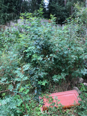 Wie man sieht treffen da gleich drei oder vier Schmuddelecken aufeinander, die Nachbarn sind also auch nicht besser als ich. ;) Im Winter sieht man es leider gnadenlos, im Sommer muss ich mir wenigstens nicht die Ecken der Nachbarn angucken, da deckt die Vegetation gnädig einiges zu.