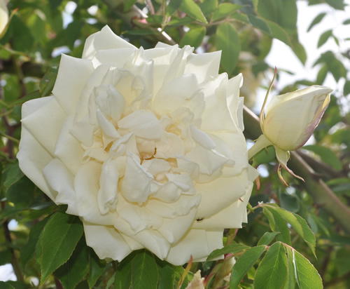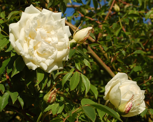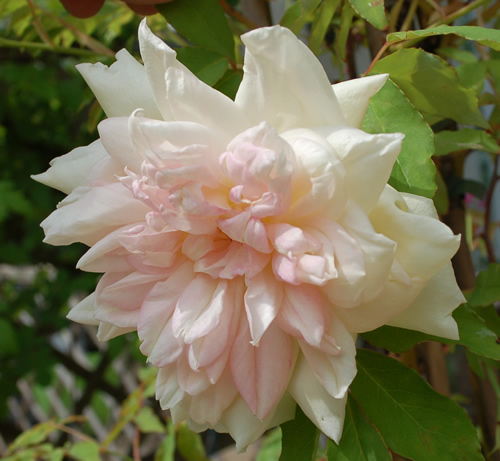 Die Blätter meiner Duchesse de Brabant wurden immer gelber und die Blüten immer kleiner.Dem bin ich im wahrsten Sinne des Wortes auf den Grund gegangen. Erst vorsichtig einen Haupttrieb gekürzt, Mark braun, dann der nächste......Jetzt sind sie alle bodennah abgeschnitten, in der Hoffnung, dass sie wieder austreibt.Meine Lady H. hat wie ich schrieb auch recht kleine Blätter sollte ich auch da einmal einen Haupttrieb kürzen?