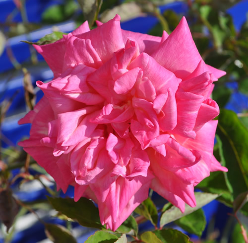 Vom gleichen Anbieter, noch im Topf, als Vergleichspflanze, sieht die reife Blüte, (wie die obige ebenfalls reife Blüte des oben gezeigten Prachtsexemplar) etwas anders aus.Der oberflächliche Unterschied besteht in der bleibenden rosa Farbe, plus, dass sie kaum Stacheln hat. Die Farbe könnte sich aber möglicherweise ändern, wenn sie in den Gartenboden kommt.Der Duft dünkt mich fast gleich. Diese Blüte dünkt mich ebenfalls sehr schön.