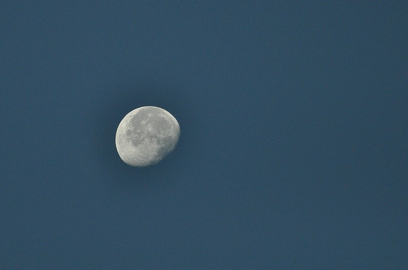 Zu den spektakulären Farben vom gestrigen Sonnenuntergang, der Mond von heute Morgen. Punkt 8 Uhr: