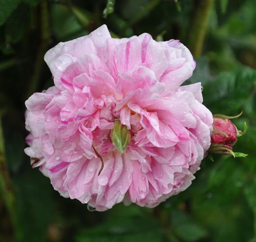 Eine kleine Gallica, letztes Jahr als kleiner Ausläufer gepflanzt. Es ist kein Name bekannt. Sie wird zwischen 40 bis 50 cm hoch. Die Blüten sind rel. gross.