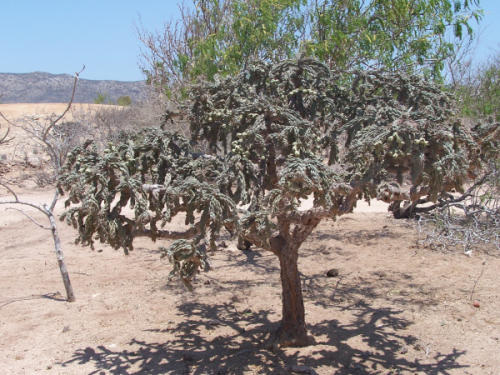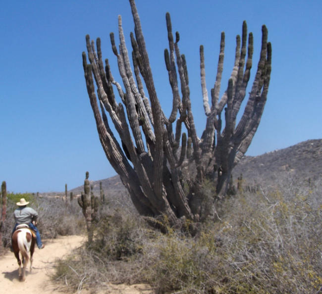 Fast alles wirkt verdorrt. Nun wissen wir auch warum wir lange Hosen anziehen sollten bei der Hitze! Falls uns ein Pferd in die Kakteen abwirft....