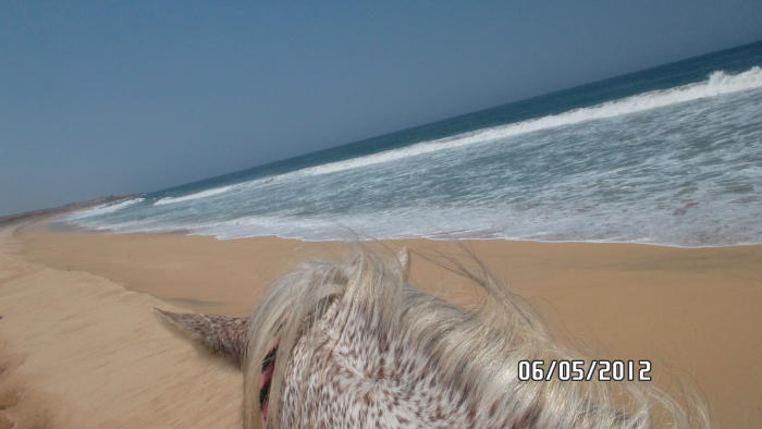 Auf dem Rücken der lammfrommen Pferde geht es dann entlang der Küste. Irgendwo fliegen Geier.....