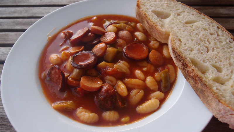 @Lieschen: 500g Tomaten brühen, häuten, entkernen und würfeln (oder fertige Stückchen kaufen). 7 Knoblauchzehen mit etwas Salz und Kräutern ( je 1/2 TL oder etwas mehr Oregano, Thymian, Salbei) zerstampfen. Nach Rezept sollten jetzt 2TL Chilipulver dazu