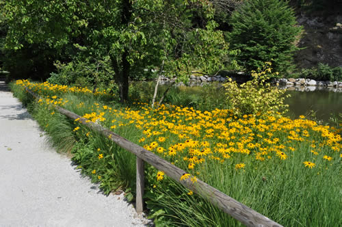 Es wurde heiss und heisser, so flüchtete ich mit den Hundis unter einen Baum am See. Währenddessen GG fleissig Fotos im Rosarium machte. Wir sind also bald dort.