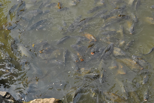 Etwas näher am Wasser kamen ganze Heerscharen von Fischen angeschwommen, aus dem ganze See!