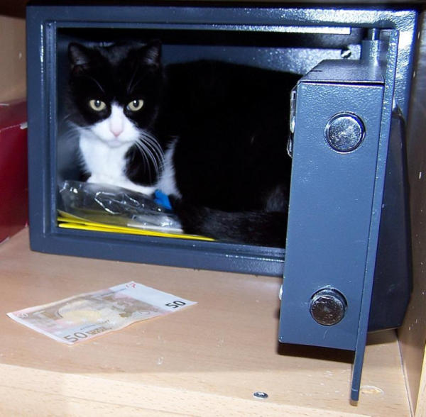 Tröste Dich, bei uns ist es auch nicht anders. In der Geldkassette lagern nur die gefundenen Katzenzähnchenköstlich, aber bei mir ist es so, Sir Seppi hat nichts zu bewachenTina hat genug davon, dass wir zu Weihnachten so viele Mäuse ausgeben. Ab heute ist Schluss damit. Sie bewacht nun unsere Quelle..lg elis