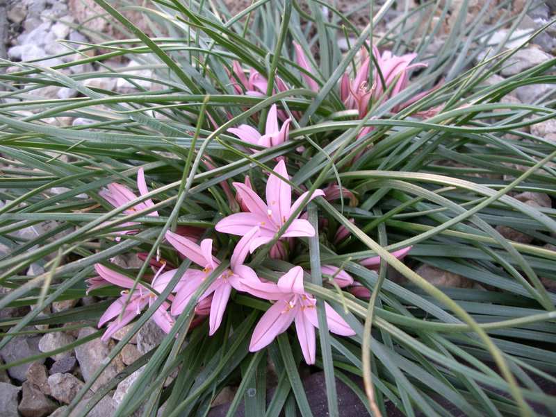 Im Alpinenhaus blüht's schon seit Januar. Asphodelus acaulis läuft zu großer Form auf.