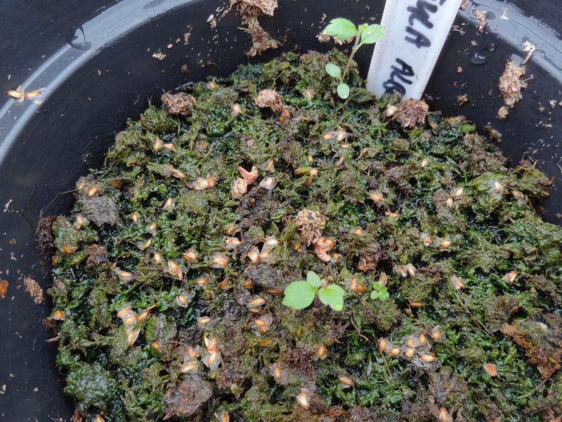 Hier keimen grad zum Grausen von GG Tagliliensämlinge im Gemüsegarten (ich hab die Erde aus den Saatgutschalen dort hingekippt - waren wohl noch einige Crosse keimfähig und ich zu ungeduldig) - jetzt muß er sie noch ein paar Tage ertragen, bis sie groß genug zur Bergung sind.