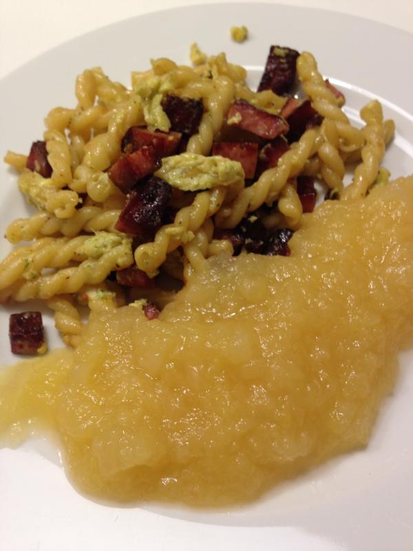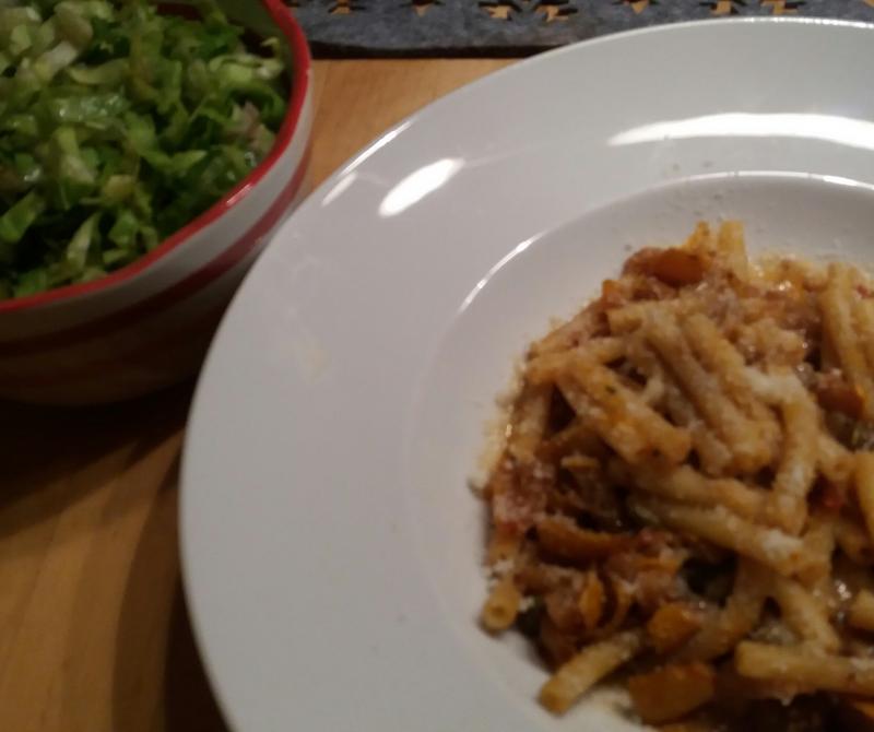 Heute gab es Maccheroni mit getrockneten Zucchini, Kapern und Pinienkernen. Dazu gab es den vorletzten Garten-Zuckerhut.