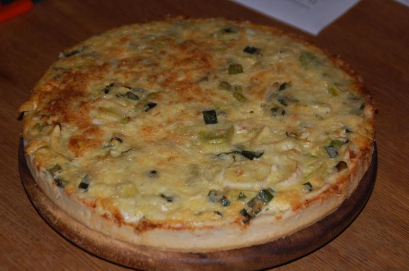 Lauchkuchen (Mürbeteig, Porree, Frühlingszwiebeln, Sahne, Eier, Muskat, P&S, Emmentaler)