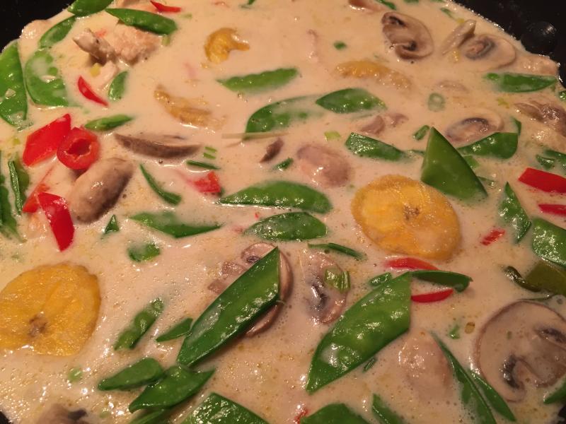 das würde ich jetzt sehr gerne alles nacheinander essen, derweil gibt es bei uns daheim thai-cross over, u.a. mit champignons, huhn, zuckerschoten, kochbanane und kokosmilch...