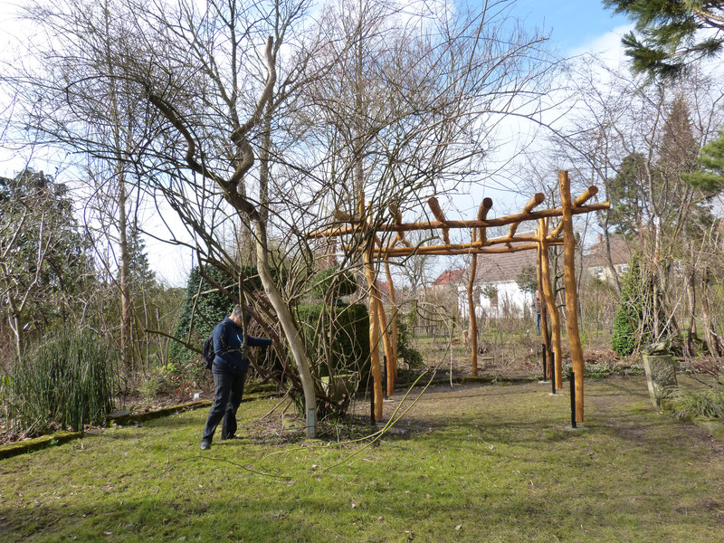 Das ist nicht meine, sondern die im Pfarrgarten Saxdorf. Und der hat man dieses massive Gerüst gebaut, das auf dem Foto zu sehen ist. Und das braucht sie ganz offensichtlich auch.