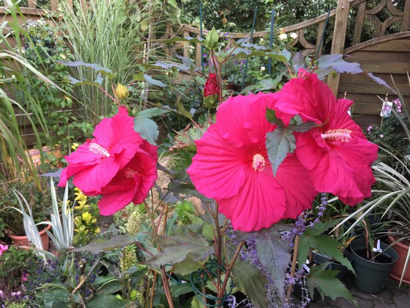 So ein Rot wie das von na-na´s Hibiskus fehlt mir. Bisher haben sich die leuchtend roten bei mir empfindlicher angestellt.