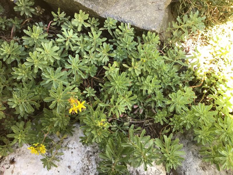 Anbei ein Bild vom heutigen Zustand des Sedums. Es ist nur ein kleiner Ausschnitt des Polsters, ein Teil welches in eine Steinspalte gewandert ist.