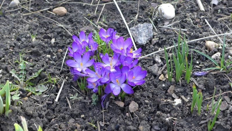 Es ist immer noch Krokuswetter, und so leuchtet mein im letzen Jahr angelegtes Beet weiterhin in hellgelb und lila. Auch Crocus vernus 'Vanguard' im Vorgarten ist mit den zarten Violett- und Silbertönen einfach herrlich.