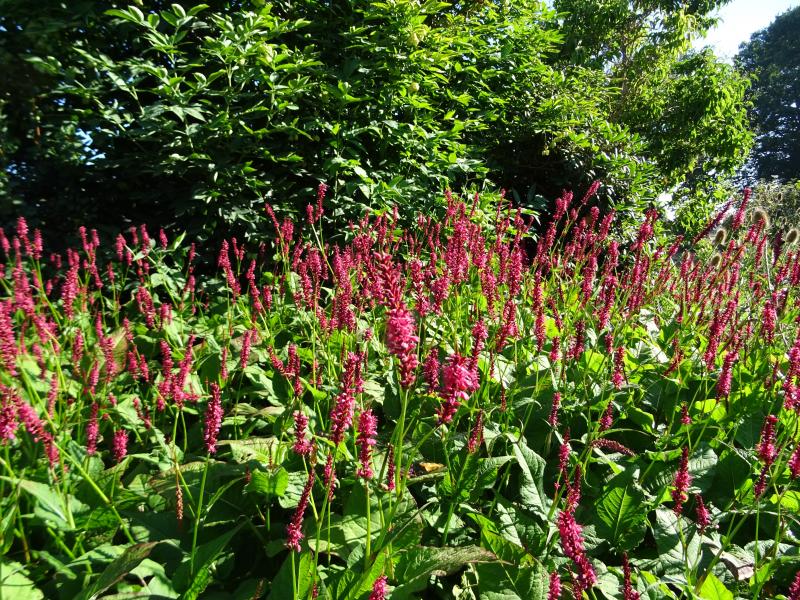 Persicaria amplexicaulis, vielleicht ist diese Horst zu massiv aber die Hummeln und Bienen lieben es.